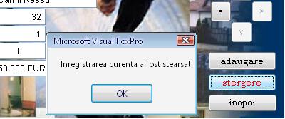 Dupa ce apasam pe butonul "stergere",ne apare un mesaj cu confirmarea ca inregistrarea a fost stearsa.
