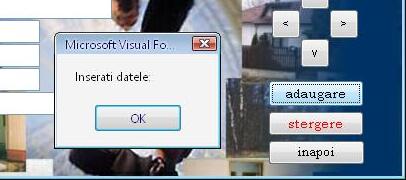 Dupa apasarea butonului "adaugare" apare un mesaj ce ne sugereaza sa adaugam date noi in baza de date.