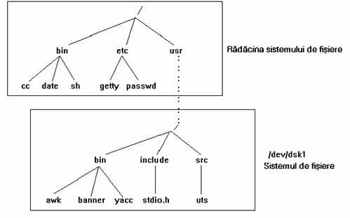extinderea sistemului de fisiere vazut de utilizatori: mount si umount;