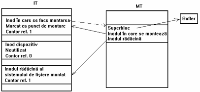 tabela de montare (Mount Table-MT) se afla în nucleu si contine informatii referitoare la sistemele de fisiere active.