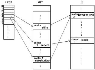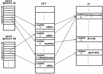 tabela descriptorilor de fisier utilizator (User File Descriptor Table-UFDT) se afla în zona alocata procesului si are câte o intrare pentru fiecare descriptor de fisier utilizat de un proces;