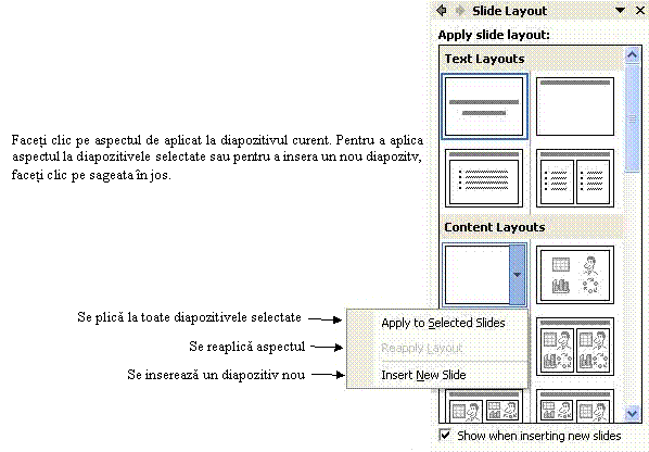 Fig. 20 Prezentarea ferestrei Slide Layout