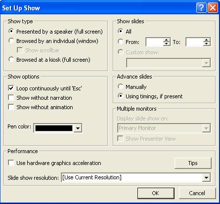 întregii prezentari sau numai diapozitivului selectat.