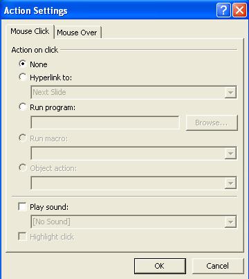 Aceleasi optiuni se gasesc si în foaia Mouse Over, deosebirea constând în faptul ca acestea sunt executate la trecerea mouse-ului peste zona respectiva si nu la efectuarea unui clic;