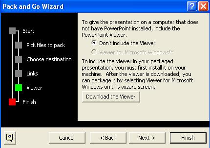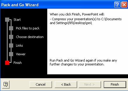 Dupa apasarea butonului Next apare ultima fereastra de dialog, Finish, care contine numai informatia ca am parcurs toate etapele si ca putem face clic pe butonul Finish pentru a vedea prezentarea. Înainte de a activa acest buton, putem sa anulam ce am facut dand clic pe butonul Cancel sau ne putem întoarce la pasii anteriori, în caz ca vrem sa schimbam ceva, cu ajutorul butonului Back. Ultima fereastra este prezentata în figura 18.