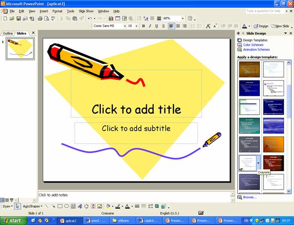 În figura 2 este prezentata fereastra aplicatiei PowerPoint.