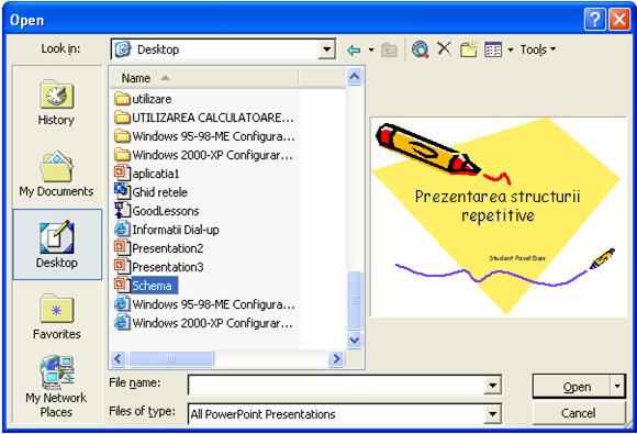 PowerPoint ofera o serie de modele de prezentare, acestea fiind niste fisiere care contin modele de prezentari cu un continut specific si layout-uri identice. Pe baza acestor modele putem crea o prezentare cu un aspect unitar.