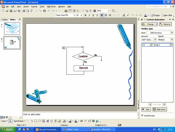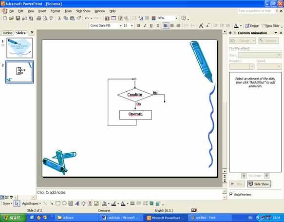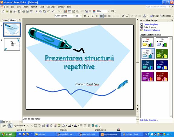 Prezentarea modului de folosire a schemelor de animatie