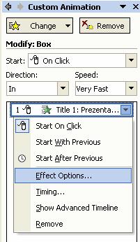 Custom Animation iar din panoul de activitati