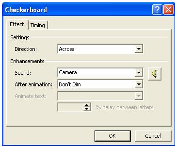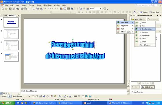 Fig. 56 Prezentarea modului de inserare a efectului de animatie Checkeboard