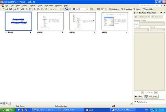 Fig. 69 Prezentarea diapozitivelor ce trebuie realizate