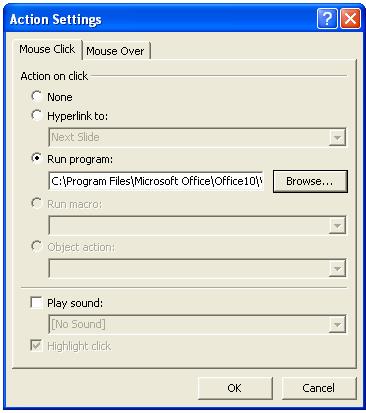 v Dupa inserarea butonului în diapozitiv, va apare o fereastra prezentata în figura 66, unde se seteaza optiunea Run pogram;