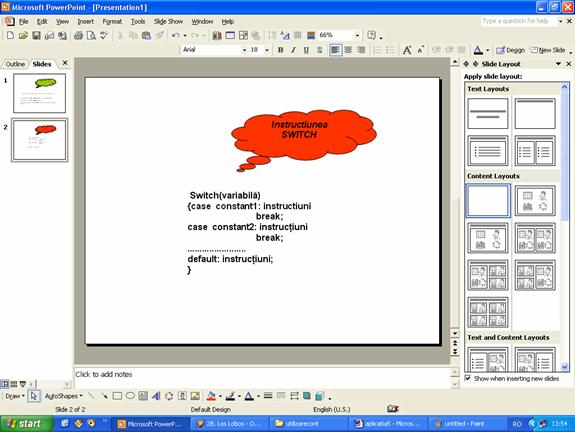 Fig. 73 Prezentarea celui de-al doilea diapozitiv