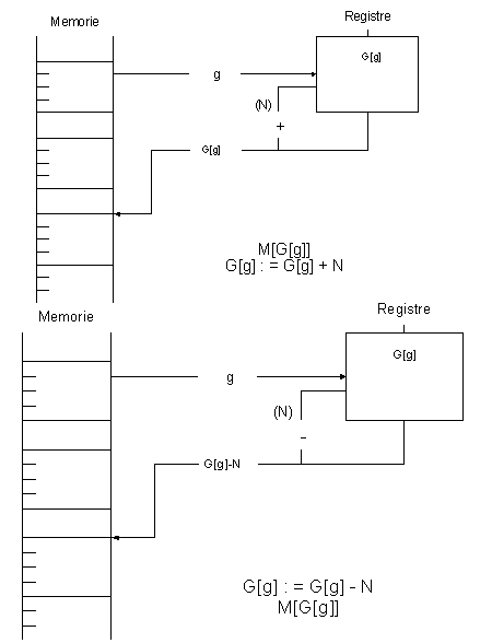 c. moduri in care procesul de evaluare a adresei necesita adunarea continuturilor unuia sau ale mai multor registre, eventual si cu folosirea unei functii de indexare, urmata de incrementarea, sau precedata de decrementarea continutului unuia din registrele implicate.