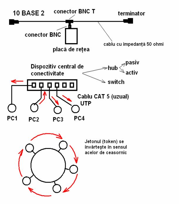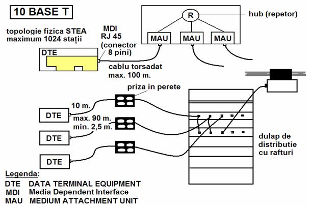 Recomandare: utilizarea de cabluri UTP CAT 5 inclusiv pentru rețele 10 BASE T, care vor putea fi folosite odată cu upgrade-ul la hub-uri / switch-uri ce funcționează la 100 Mbps, fără a fi necesară înlocuirea acestora.