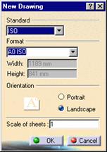 -Se selecteaza standardul folosit si formatul, de exemplu A0 ISO (fig.32), pe ecran este afisata foia de