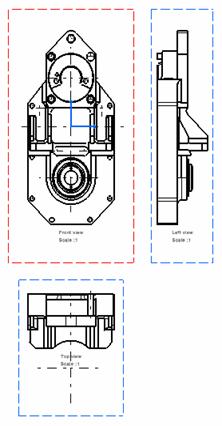 Se trece din nou in modulul Drafting si se genereaza vederea prin manipularea rozetei albastre