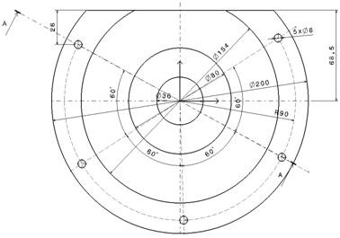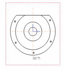 Fig.36. Cadrul cuprinzand vederea din fata a piesei si rozeta de orientare a acesteia