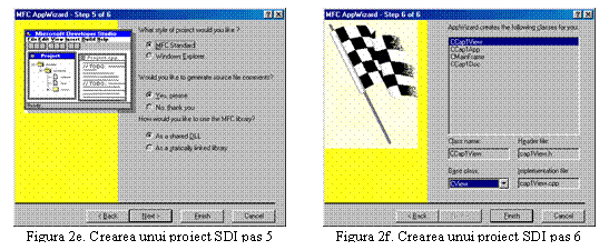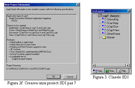 Daca vom urmari clasele create (fig. 3) vom constata crearea celor 4 clase amintite anterior, precum si a clasei CAboutDlg cu acelasi rol ca si în cazul proiectului de tip Dialog.