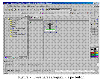 se modifica functiile asociate butoanelor din bara de unelte utilizator, astfel încât sa înscrie culorile alese în indicatorul barei de stare. Cum aceste functii sunt în clasa CCap1View, va trebui ca în fiecare sa determinam un pointer spre obiectul CMainFrame care contine fereastra cadru si prin intermediul lui sa apelam functia ScrieInBara(). Pentru functiile asociate apasarii butoanelor, se propun modificarile: