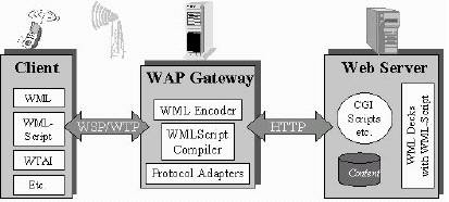 WAP permite telefoanelor mobile sau dispozitivelor de tip PDA sa execute un transfer de date între Internet si dispozitivul mobil, pe baza unei proceduri în doi pasi, având ca scop prezentarea site-ului web sau a raspunsului de la un ofertant de servicii, pe un ecran cu dimensiuni si facilitati limitate. Unul din acesti pasi poate fi numit "WAP Gateway" iar celalalt "micro-browser". Micro-browser-ul este instalat pe dispozitiv cu scopul de a gestiona raspunsul primit sub forma WML (Wireless Markup Language). Cererea trece prin intermediul "WAP Gateway", care are ca scop crearea unei interfete între Internet si dispozitivul mobil, dupa cum se poate observa si în figura urmatoare.