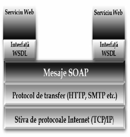 Arhitectura serviciilor web se compune din tehnologii diferite care permit unui client sa obtina date de la un server, utilizand protocolul SOAP. Un serviciu web ofera o interfata de programare a aplicatiilor (API) web care permite ca doua aplicatii sa comunice folosind XML prin web sau printr-o conexiune de retea. Acest sistem a fost gandit ca un agent intermediar in cazurile de integrare inter-aplicatii. Un serviciu web poate fi dezvoltat in orice limbaj de programare, pe orice platforma, dar mai important este faptul ca poate fi accesat de orice alta aplicatie, indiferent de limbajul in care a fost dezvoltata. SOAP serveste drept entitate care utilizeaza XML pentru a colecta mesajele specifice, serviciul, interfata sau tipul de port si legatura serviciului (legatura contine informatii despre serviciu cum ar fi redirectarea gazdei si punctul de acces).