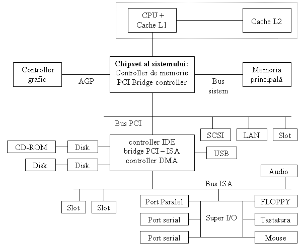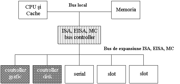 1.4.1 Privire generalaBus-uri de expansiune - ISA (sau AT, aparut în 1984), Micro Channel (MC, 1987), EISA (1989). În timp ce bus-ul ISA mai e folosit astazi pentru dispozitive de viteza mica, Micro Channel si EISA aveau performante mai bune, dar au fost înlocuite de PCI.