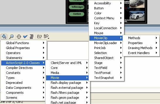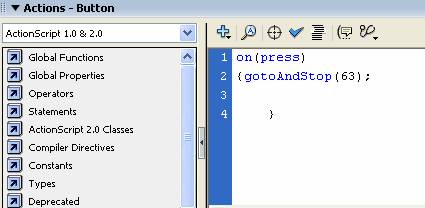 Imaginea de fundal a paginii principale ramane pe Frame (63) , uramand de aici a fi accesate prin intermediul butoanelor din stanga paginii. Action Scriptul este reprezenatat mai jos.