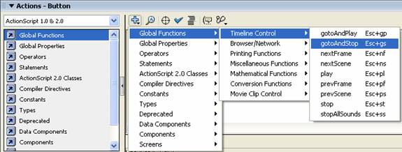 Pentru selectarea si folosirea comenzii specifice butoanelor s-a folosit comanda reprezentata mai jos din Action Script.