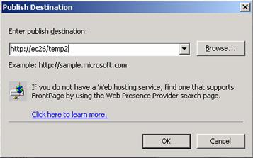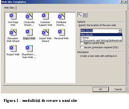an cazul in care site-ul nu a mai fost publicat se deschide o caseta de dialog prin care se cere alegerea destinatiei de publicare.