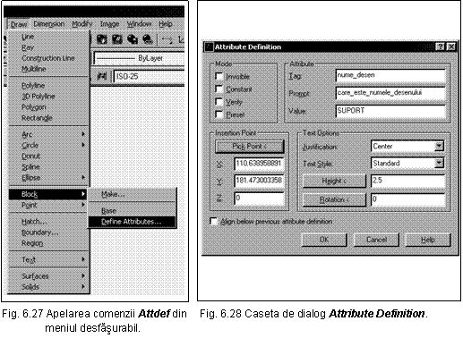 crearea de atribute ale unui bloc, prin intermediul casetei de dialog Attribute