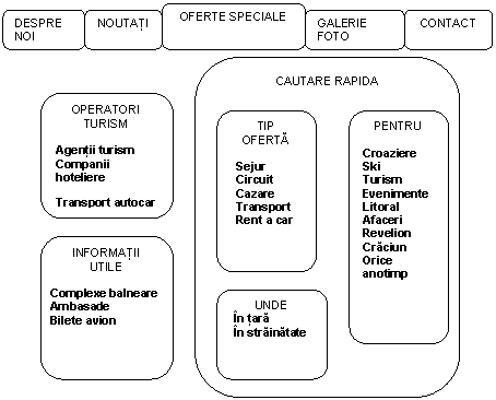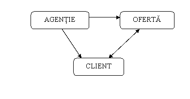 Relatiile dintre cele trei entitati alese sunt de tip 1 : n (agentie-client; agentie-oferta) si n : m (oferta-client).