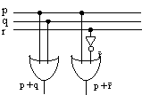 p+q (p sau q) se citeste îmi place macar (cel putin) una din disciplinele matematica sau economie.