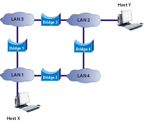 LAN 1 - Bridge 1 - LAN 3 - Bridge 3 -LAN 2