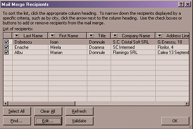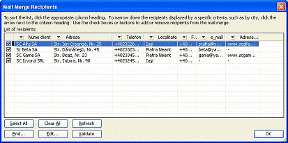 face si prin utilizarea optiunilor din bara de lucru Mail Merge (View-