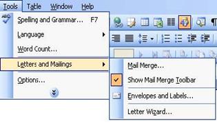 >Toolbars->Mail Merge)