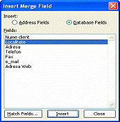 Pt. a se selecta din o lista de campuri ce nu apartin unei baze de date campurile pe care le puteti adauga la document ca de ex. Campuri Fill-In, care cere utilizatorului sa introduca text de document, sau campull Merge Record care introduce nr. īnregistrarii curente ce se combina). |