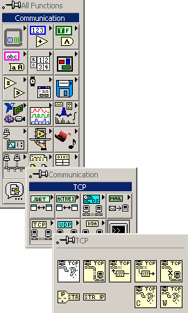 Functiile care utilizeaza protocolul TCP/IP se gasesc īn paleta de functii ale diagramei procedānd ca īn figura 1.