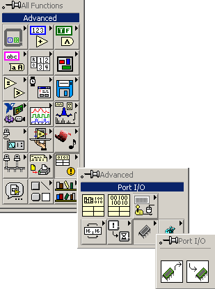 Figura 2. Paletele cu functii pentru comunicarea seriala si paralela