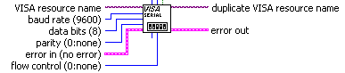 - Functia VISA Configure Serial Port.vi initializeaza portul serial specificat prin cāmpul VISA resource name cu setarile specificate.