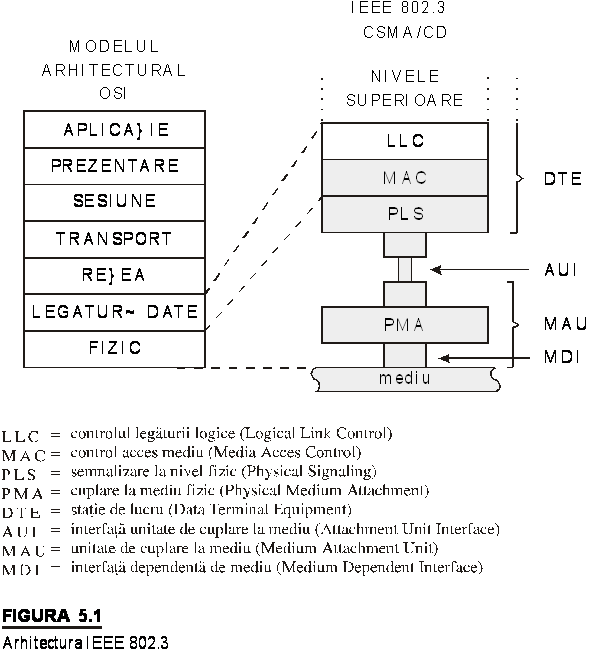 Standardul IEEE 802.3 acopera atat subnivelul MAC cat si nivelul fizic. In figura 5.1 se prezinta mai in detaliu arhitectura standardului IEEE 802.3.