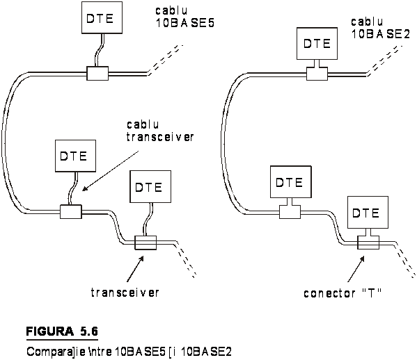 In figura 5.6 se prezinta o comparatie intre 10BASE2 si 10BASE5.