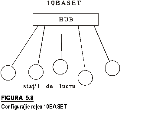 Varianta 10BASET se bazeaza pe o topologie de tip stea ca in figura 5.8.