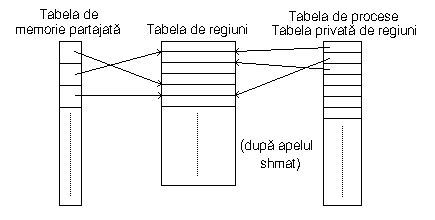 unde id este descriptorul de mesaj, msg este adresa unei structuri de date a utilizatorului īn care se va scrie mesajul primit, maxcount este dimensiunea sirului de caractere din structura de date msg, type specifica tipul de mesaj pe care utilizatorul doreste sa-l citeasca, iar flag precizeaza ce trebuie sa faca nucleul daca nu exista mesaje īn coada de mesaje. Valoarea īntoarsa de apel, count, reprezinta numarul de octeti de date receptionati efectiv de catre utilizator.