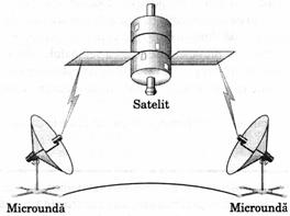microundelor catre un satelit, apoi transmiterea mai departe catre un