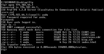 FTP - reprezinta un sistem ce permite utilizatorilor transferul de fisiere de pe un calculator pe altul. Pot fi transmise programe, fisiere multimedia sau documente. fig268