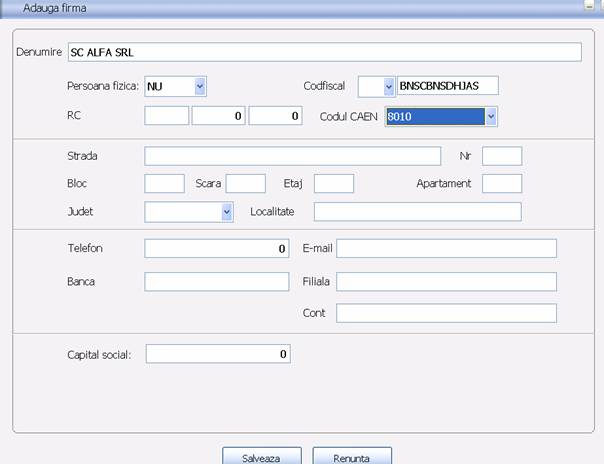 Aplicatia permite crearea unei noi societati cu urm observatii: