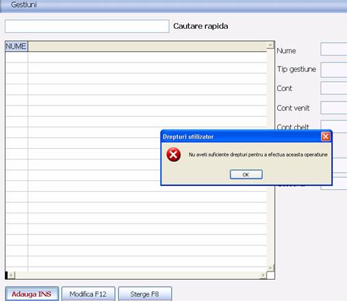 Ne logam drept utilizator CONTROL pentru a testa drepturile utilizatorului. Am incercat adaugare de noi produse si aplicati, avand in vedere drepturile acestui utilizator nu permite acest lucru, transmitand urm mesaj din fig: