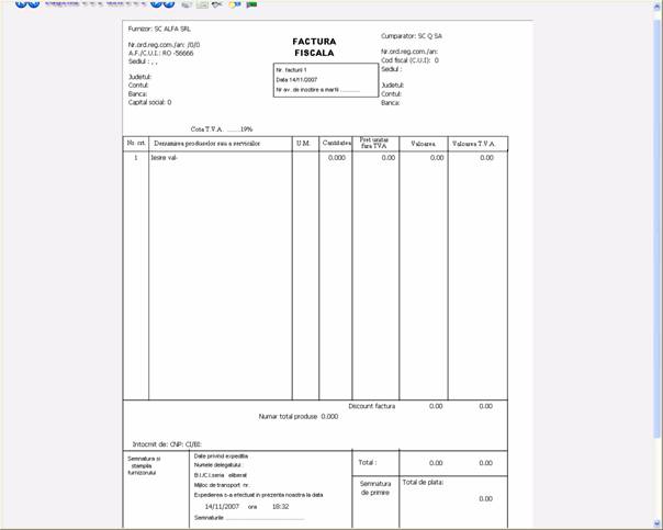 Model de factura generat de aplicatie - corespunde cerintelor legale actuale.