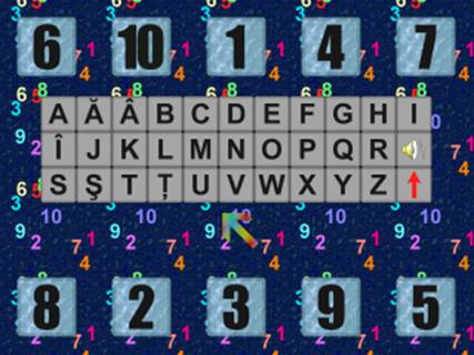 mai multe butoane cu literele alfabetului românesc, precum si doua
